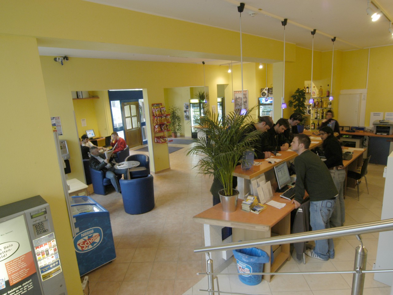 Рядом с просторным секретариатом находятся студенческая библиотека - место встречи с одноклассниками и друзьями во время перемен и после занятий. Наслаждайтесь чашкой кофе или холодными напитками в нашем кафетерии. Светлые классы находятся на 3 и 4 этаже здания. Все классные помещения оснащены современным аудиовизуальным оборудованием и рассчитаны на максимум 15 человек. На открытой терассе Вы можете отдохнуть на солнце или поиграть в настольный теннис.